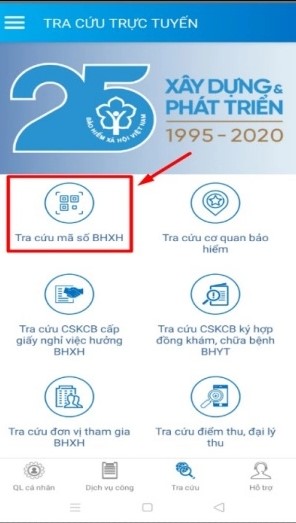 Bước 3: Chọn Tra cứu mã số BHXH